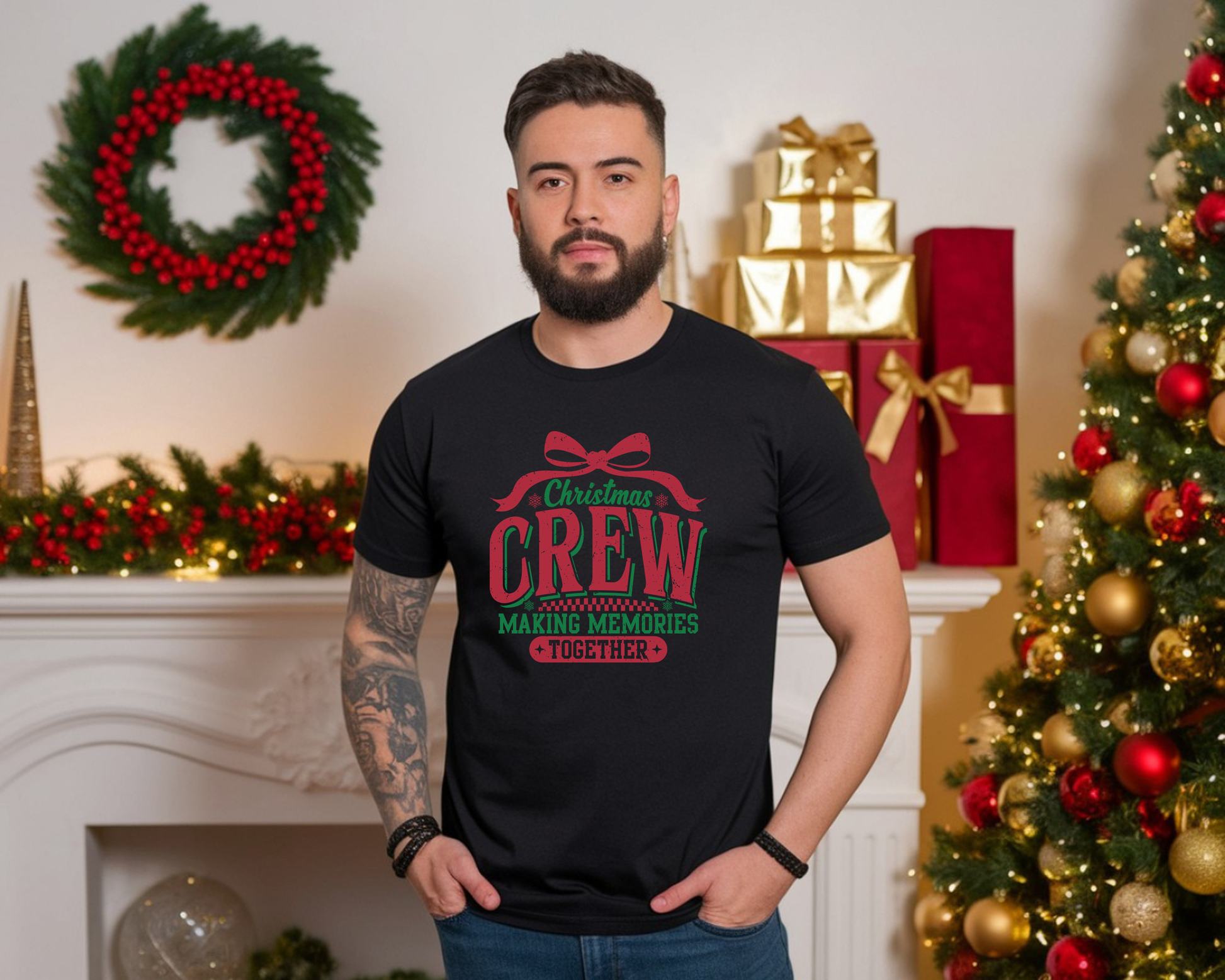 This family holiday tee captures the quiet warmth of a living room full of laughter, hot cocoa, and the soft rustle of wrapping paper. Lightweight and breathable, the crew shirt sits comfortably through tree trimming, movie nights, and post-dinner walks to see the neighborhood lights. The design’s message — Making Memories Together — reads like an invitation to slow down and savor the imperfect, small moments that become family lore. Wear it with pajama pants on a chilly morning, layered under a cardigan for a casual gathering, or out on a twilight stroll after dinner. It feels lived-in without losing shape, and the subtle natural flecks on lighter fabrics add a homespun, cozy touch that fits right into holiday traditions.